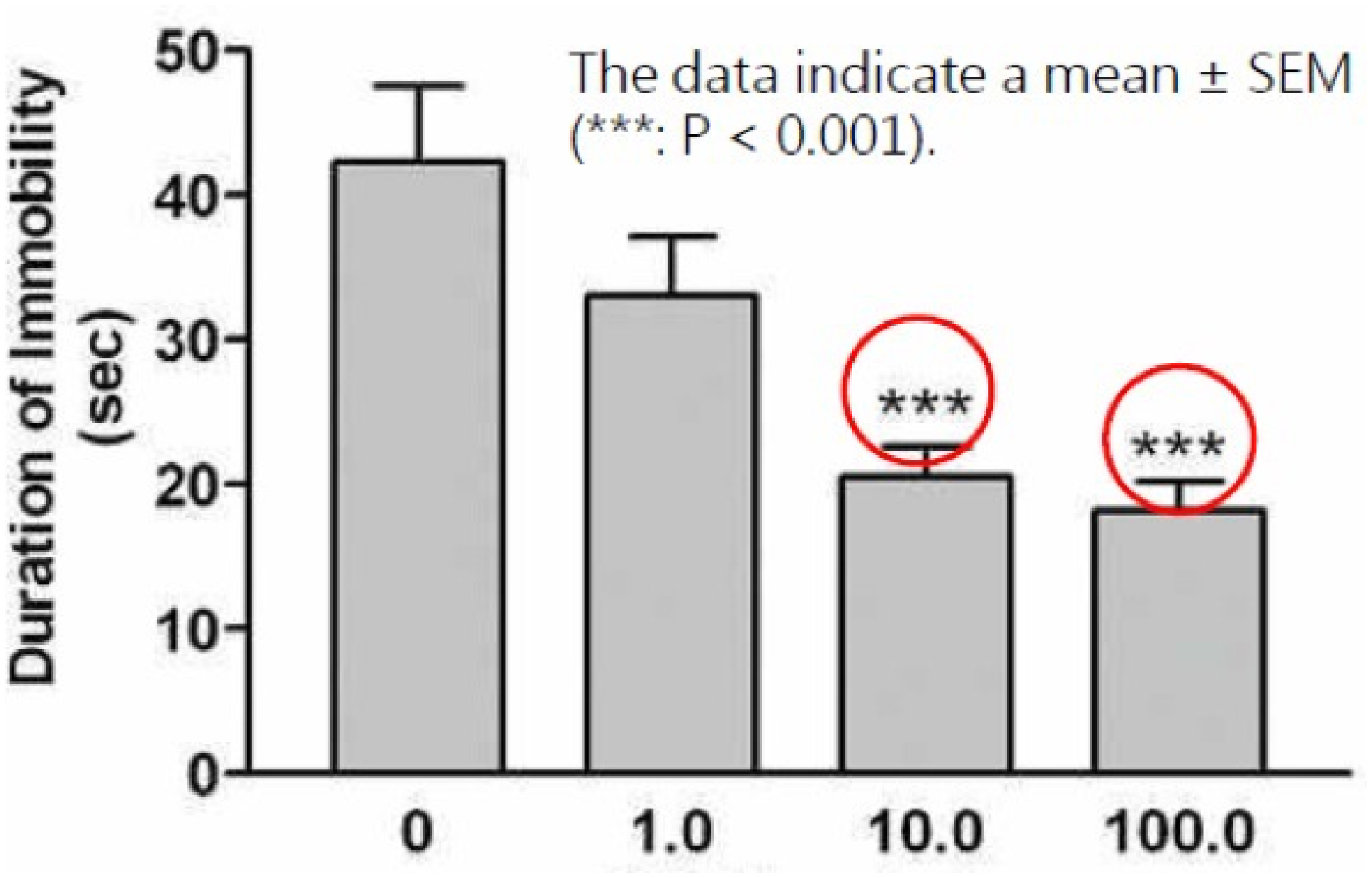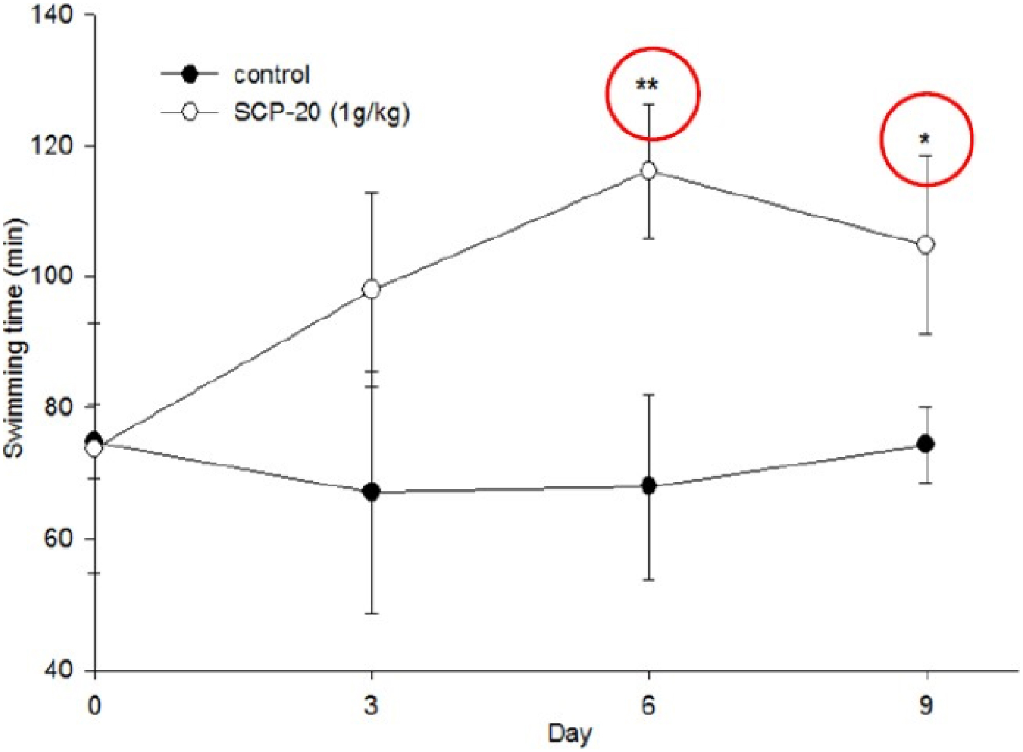 攝取酵母萃取物的小鼠游泳時間顯著大於控制組,酵母萃取物具有抗壓力的作用。